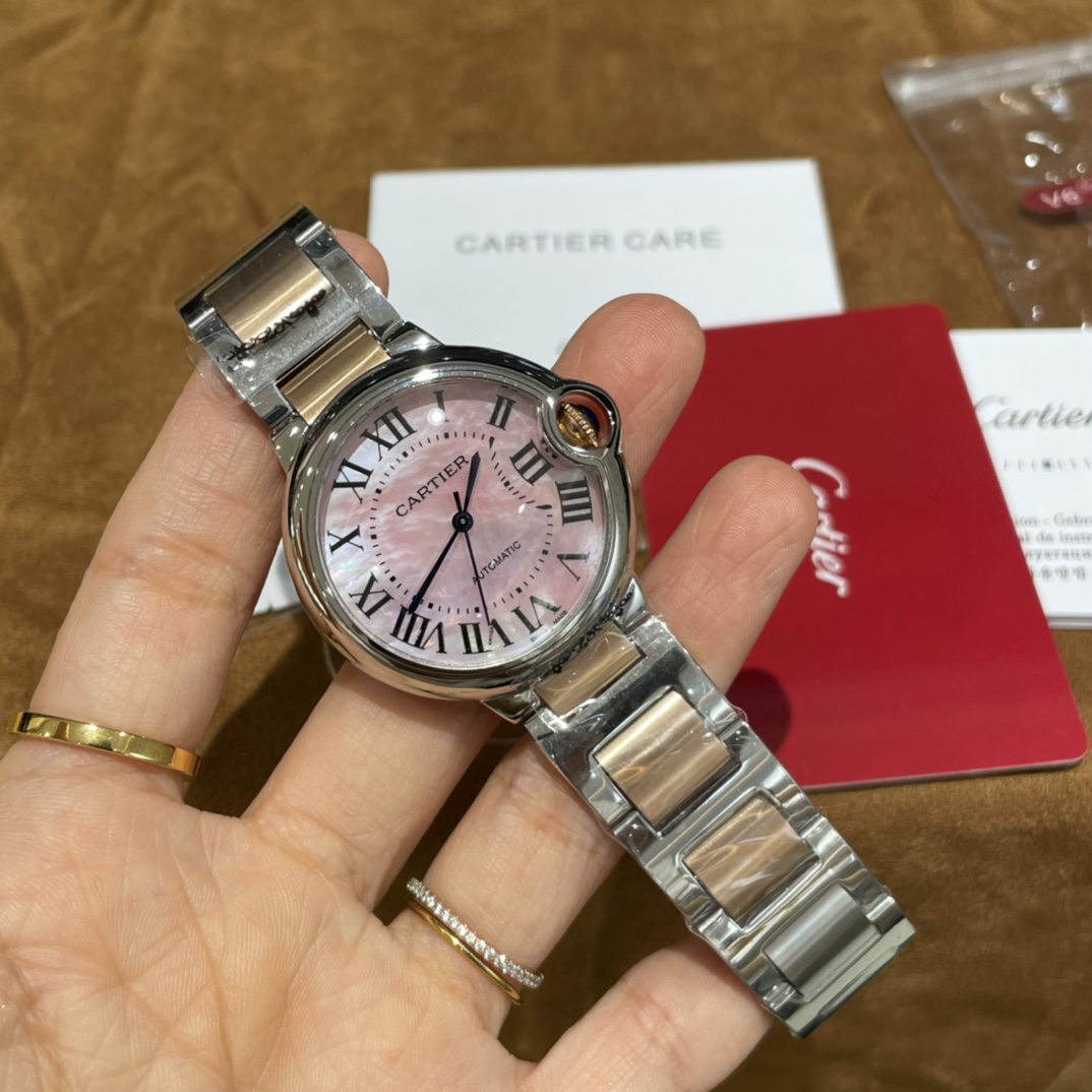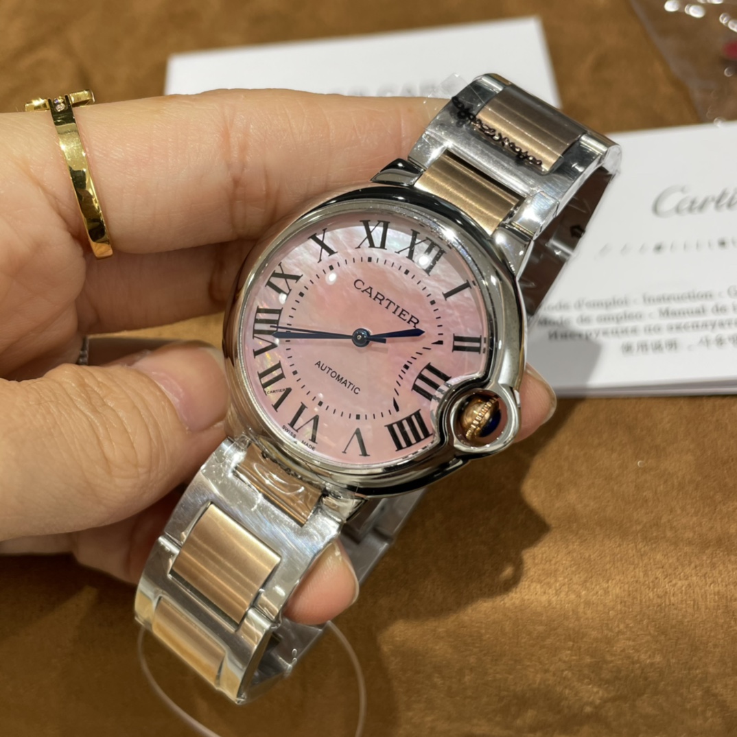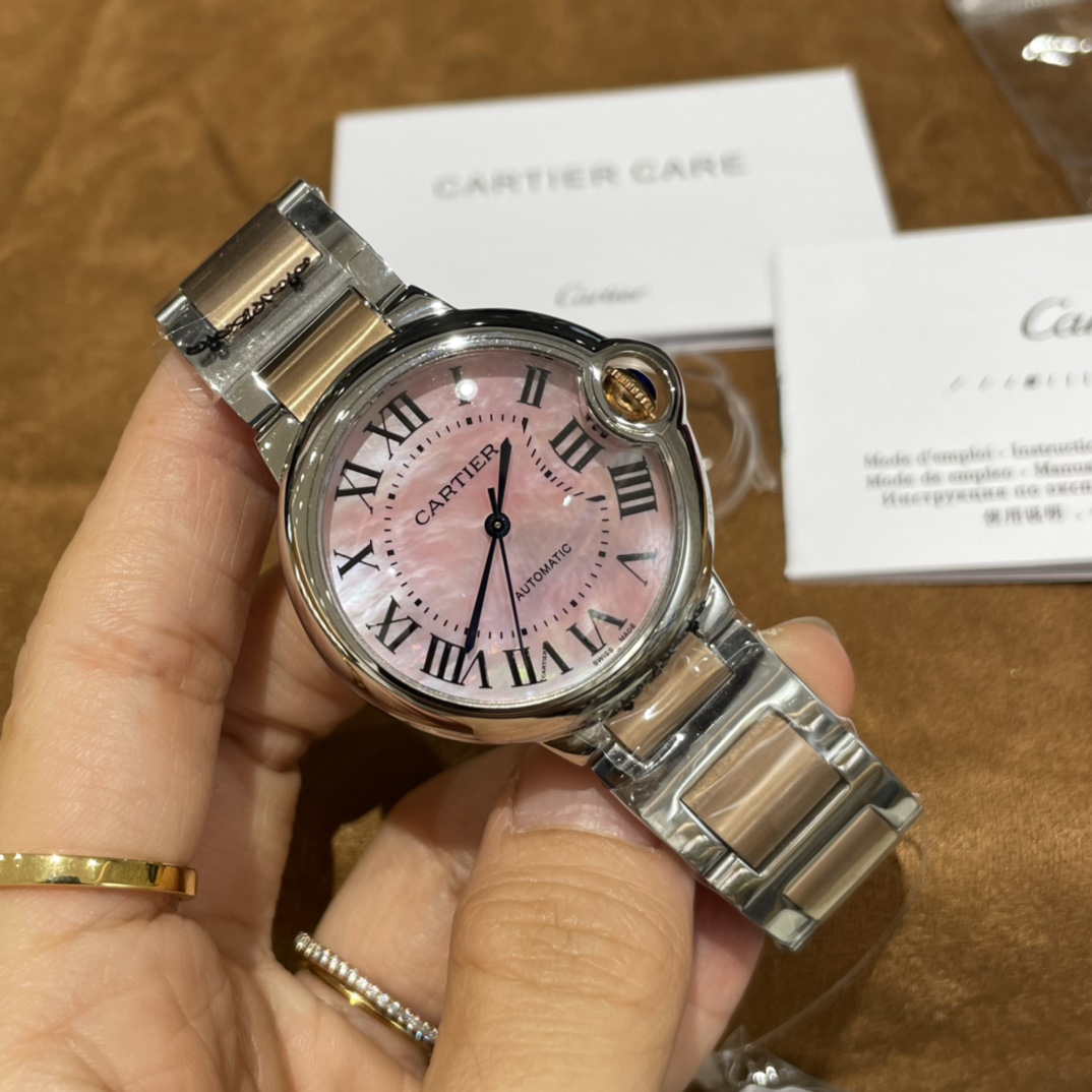 Cartier Ballon Bleu de Steel Pink Dial 36mm Ref. W6920033