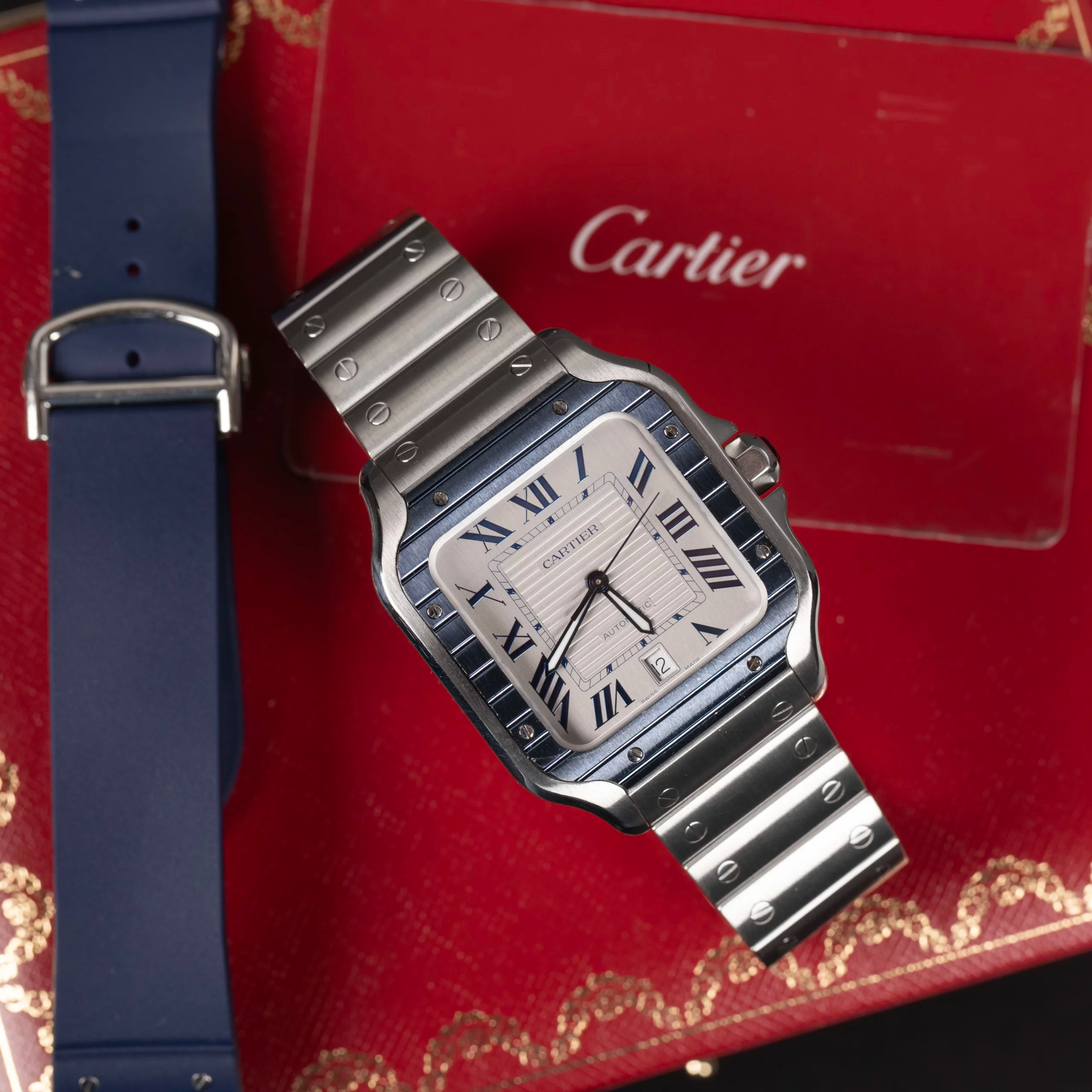 CARTIER SANTOS Blue PVD Bezel 39.8mm WSSA0047